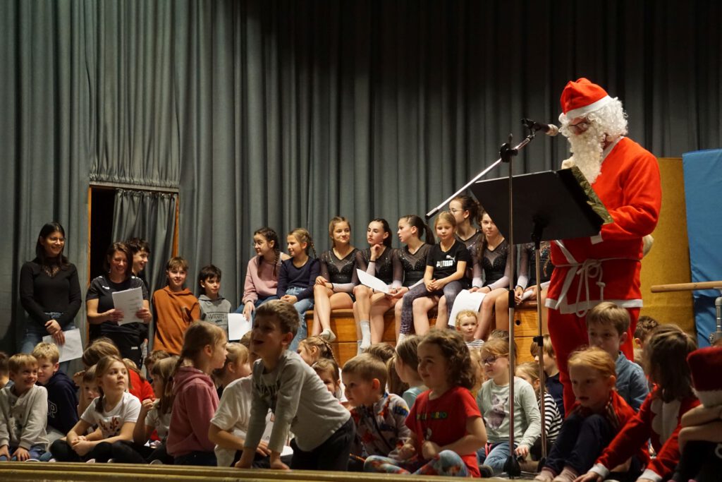 Am Samstag 13.12. fand die traditionelle Weihnachtsfeier des TVH in der voll besetzten Haseltalhalle statt. Wie immer zeigten die Kindergruppen turnerische Übungen aus ihrem Trainingsprogramm. Insgesamt waren ca. 130 junge Sportler und Sportlerinnen am Programm beteiligt, diese werden von 33 ehrenamtlichen Übungsleitern betreut. Eröffnet wurde die Veranstaltung mit dem von allen Kindern gesungenen Lied „Wir sind die Kinder vom TVH“ und der Begrüßungsansprache vom Vorsitzenden Öffentlichkeitsarbeit Robin Hirsch.