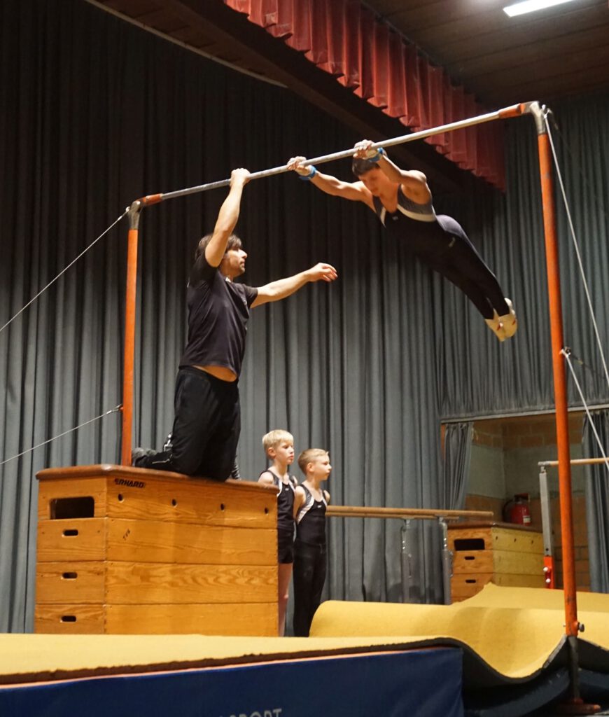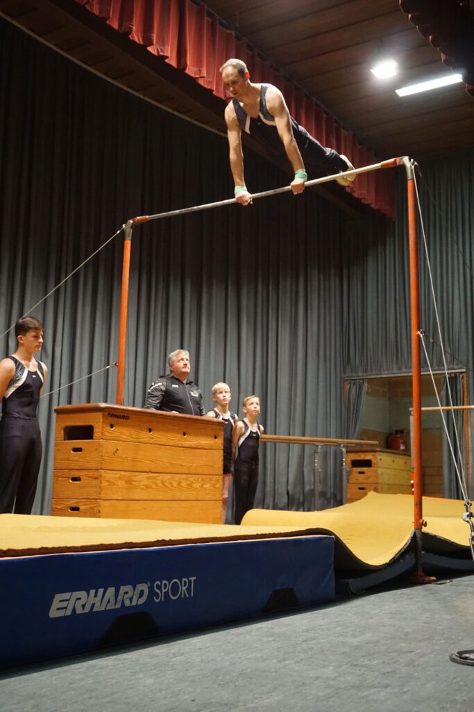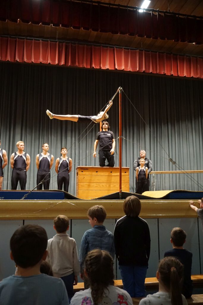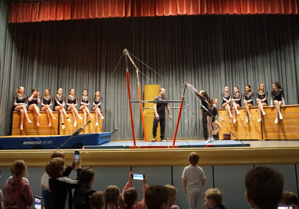 Die Leistungsturner männliche Jugend/Aktive zeigten ihr Können mit Turnen vom Stützreck zum Hochreck. Die weiblichen Leistungsturner der Jugend und Aktiven waren dran. Die 14 jungen Damen boten ein wunderschönes Bild zum Anfang und turnten am Stufenbarren Übungen aus dem Wettkampfprogramm. Die Gruppen der Leistungsturner zeigten herausragende turnerische Leistungen, die von den Zuschauern begeistert mit Applaus bedacht wurden.